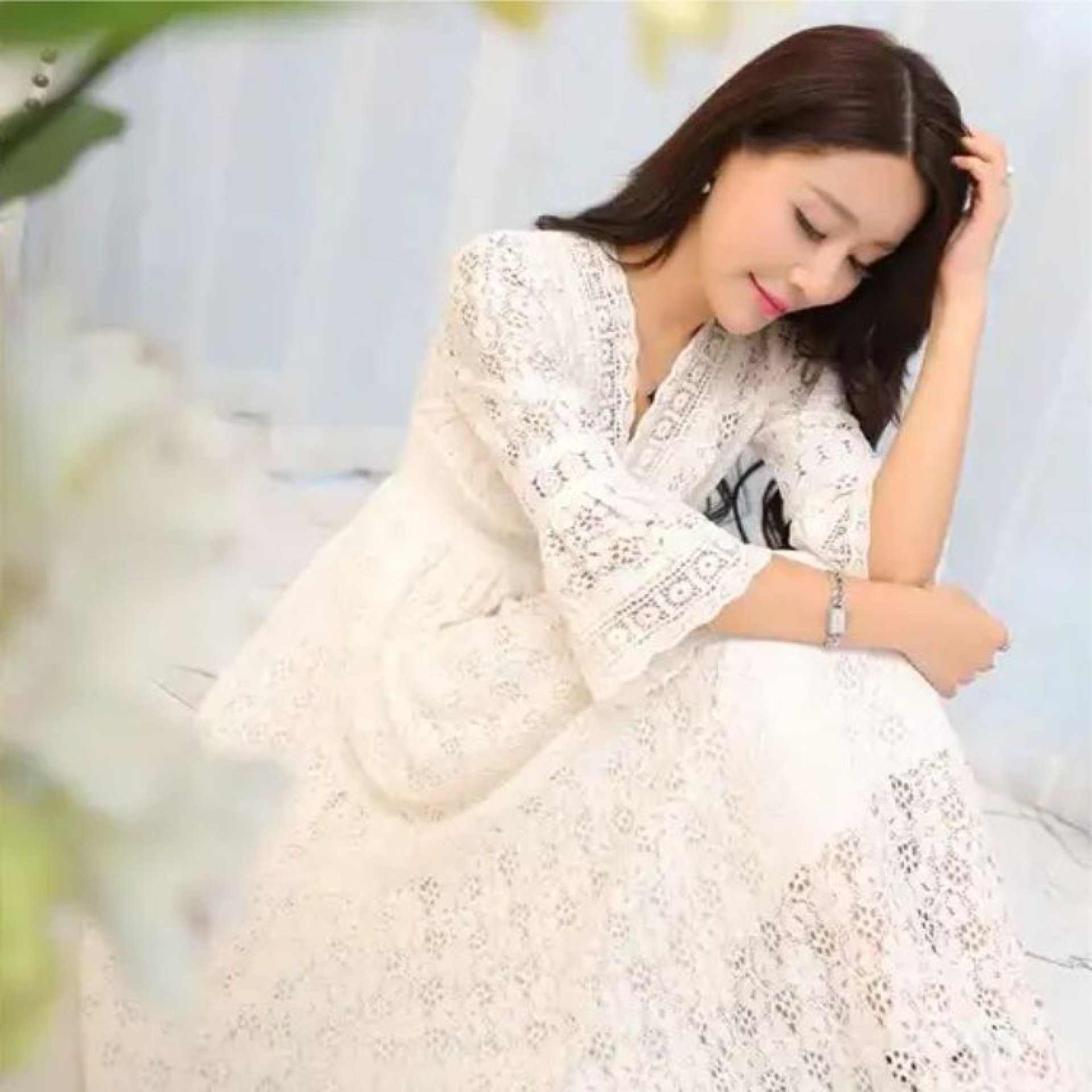 vestido largo De encaje blanco bohemio playa